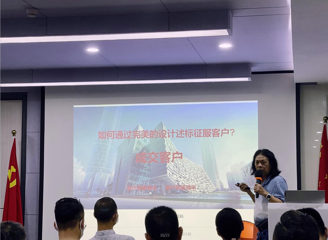 分享会上,龙院长阐述了“企业需要什么样的设计师”,重点引出了“米兰官方网站设计师应具备的10大素养”,接着对“建筑行业现状及设计师比重”做了一系列数据调查,综合分析了在现实中“述标失败的几大主要问题”,得出“出彩的设计师才是市场宠儿”的重要结论。龙院长指出述标内容即成果呈现,设计师谈单“三分靠设计,七分靠述标”,所以汇报前期的准备和预演、述标逻辑、述标重点显得尤为重要。龙院长用他独具一格的授课方式,赢得现场一阵阵喝彩。