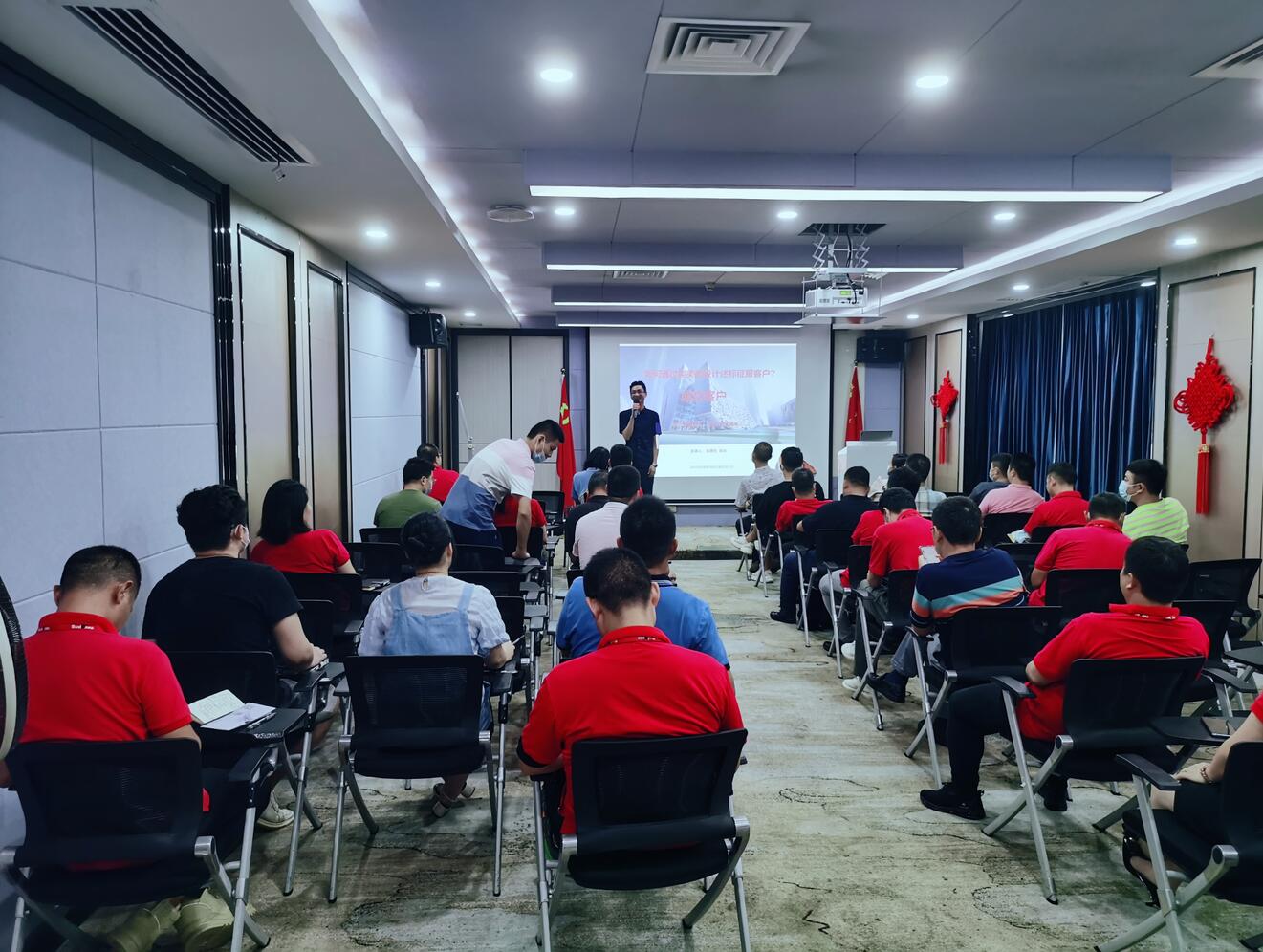 为了能更好地提升米兰官方网站设计院的核心竞争力,加强设计院内部的沟通交流,实现信息资源共享、互通、互融。米兰官方网站设计院于8月14日上午10点在集团总部多功能厅举办了一场主题为“如何通过完美设计述标成交客户”的周末沙龙分享交流活动。本次沙龙由米兰官方网站设计院执行院长汤胜荣主持,特邀米兰官方网站设计院院长龙德元作为主讲,为设计师和项目总监们带来了一场精彩绝伦的设计签单分享盛宴。本次沙龙干货满满,反响十分热烈,吸引了60余位设计师和项目总参加,现场座无虚席,掌声连连。